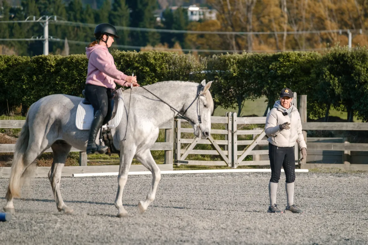 No. You don’t need fancy tack, a Grand Prix horse, or an indoor arena. Most exercises can be done in a flat paddock, arena, or safe riding space.